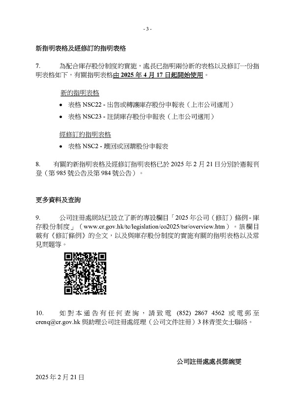 《公司条例》(第622章)(下称「该条例」)已于2025年5月23日作出修订,相关的《2025年公司(修订)(第2号)条…